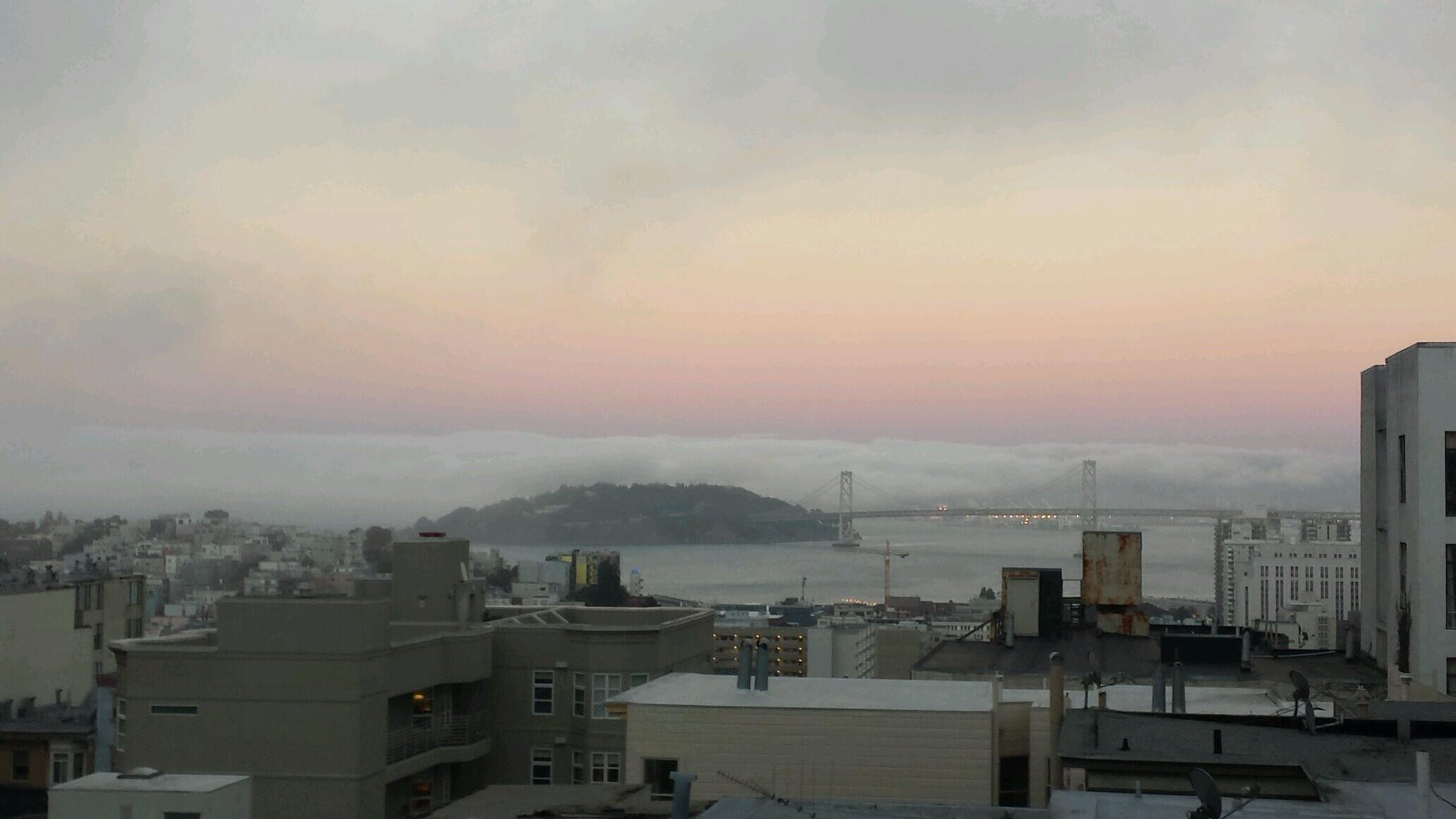 I gave the two ladies my elevator speech about Indigo and the Fateful Weather theme. Hollie's response was a huge surprise: "Like the fog in San Francisco." Okay, I hadn't heard of children disappearing in the Bay fog, like they do in Indigo, but perhaps I am just out of touch. "Oh, yeah, you know," she continued, "the fog has a name. It's Carl. Carl the Fog. Even has a Twitter account."My spouse was adamant. "No, it should be 'Carla'. Fog is feminine, it comes in on little cat feet. Carl (or Karl) is okay for a hurricane or typhoon, for weather that stomps in wearing big ol' Army boots." But Hollie was right. The Bay fog has been personalized, and it is a male persona.